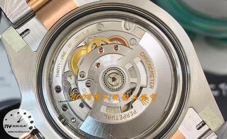 对于表带则是为间玫设计,表带中间的侧面也是不会出现露白的尴尬局面,细节打磨也是非常强,表扣细节处理非常到位!表带采用经典的蚝式结构,中间链节为玫瑰金色,两侧为精钢原色。表带边缘处理圆润,佩戴时不会刮手。表扣开合顺畅,内部雕刻清晰,细节处理到位。表带整体的质感与手感都与原版非常接近。
