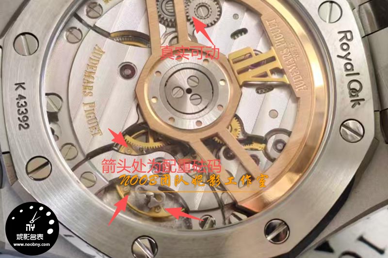 对于机芯来说,此次腕表机芯则是为经典的4302一体机芯,这也是这个工厂的一个亮点,铊片重量与原版一致重量,动力更足,不会断链,AP字体更圆润,logo1-1精雕雕刻而成精美绝伦 !同时对于4302机芯此次也是做了无卡度的设计,与此同时对于摆轮位置也是做了配重砝码(俗称“砝码摆”)!这个细节来说则是非常不错,毕竟在机芯的设计方面,完全按照原版参数去做了开模,不需要再单独改装,过去,表友需要花费大几千进行后期改装才能达到此效果,如今APS厂直接做到了“一步到位”。同时对于机芯的稳定性来说,也是非常强!(机芯做了高清实拍!)