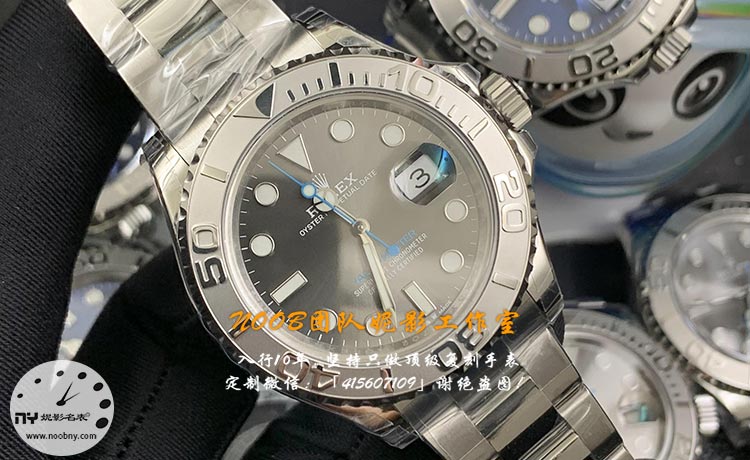 表盘沿用游艇名仕经典造型,推出灰盘、蓝盘两大热门配色,灰色调温润高级、低调内敛,蓝色调深邃大气、商务百搭,两种配色都经过反复调色,和正品色差极小,光线下的渐变光泽完美复刻原版效果;表盘字体印刷清晰立体,无糊边、溢漆问题,刻度时标经过精细打磨,搭配经典三针设计,简约大气又不失精致,指针无毛刺、走时平稳,整体盘面干净整洁,和正品视觉效果几乎无差。