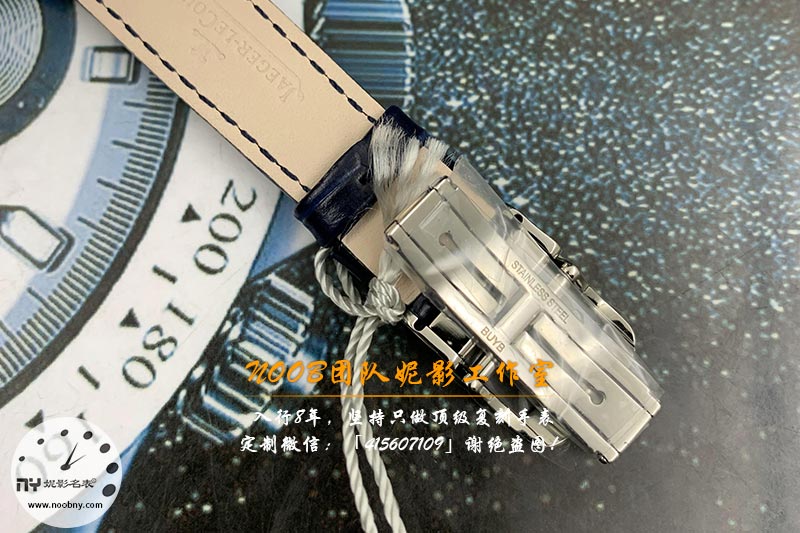 同时搭配了意大利小牛皮轻便透气,质感上佳,搭配积家经典折叠表扣。表扣的做工精致,打磨细腻,且表扣上雕刻有积家的品牌logo,表扣细节也是非常优秀,对于表带而言,也可以更换鳄鱼皮表带!